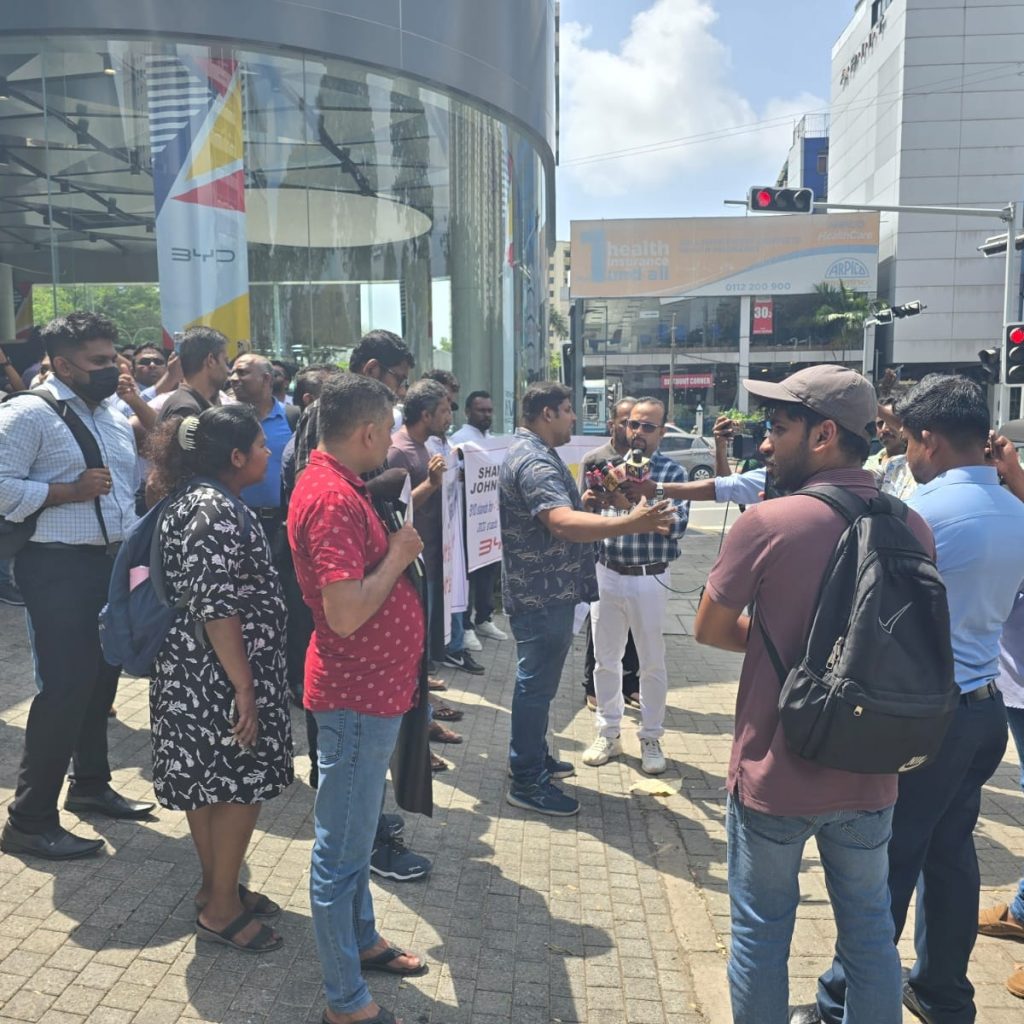 BYD වාහන රේගුවෙන් මුදා හැරීමේ ප්රමාදයට විසඳුම් ඉල්ලා අද(04) කොළඹදී විරෝධතාවක් පැවැත්වුණා.